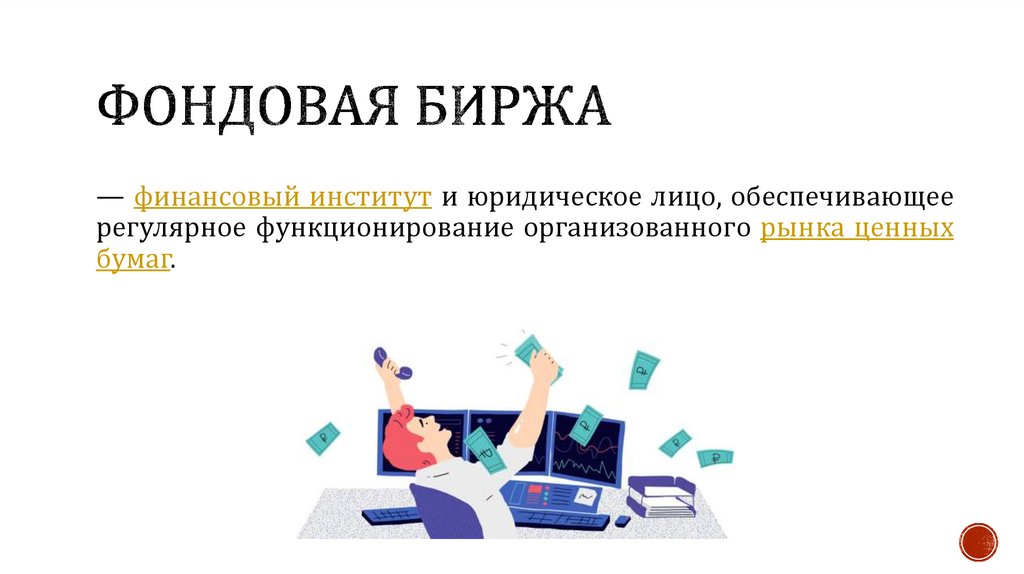 — финансовый институт и юридическое лицо, обеспечивающеерегулярное функционирование организованного рынка ценных