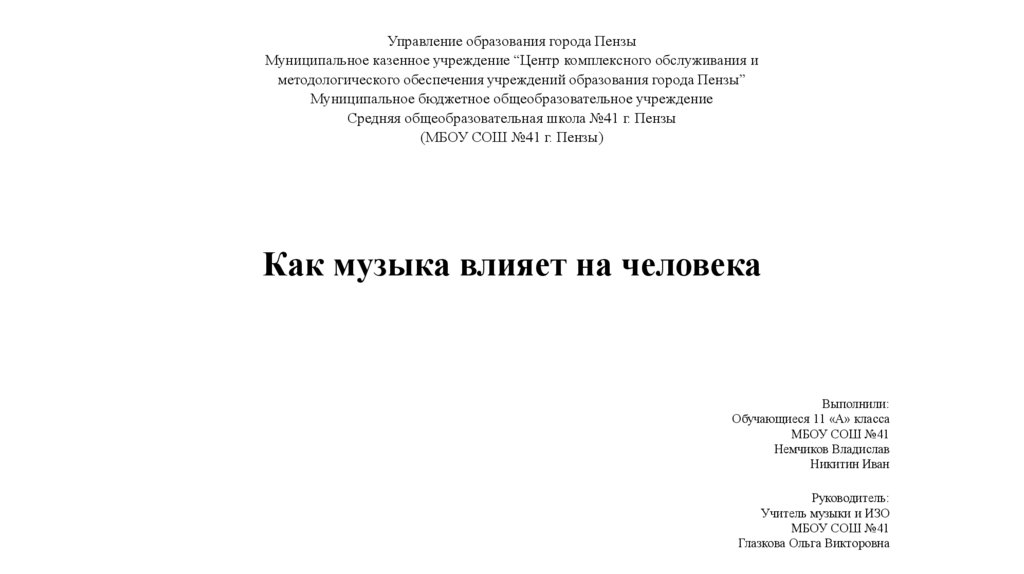 Управление образования города ПензыМуниципальное казенное учреждение “Центр комплексного обслуживания и