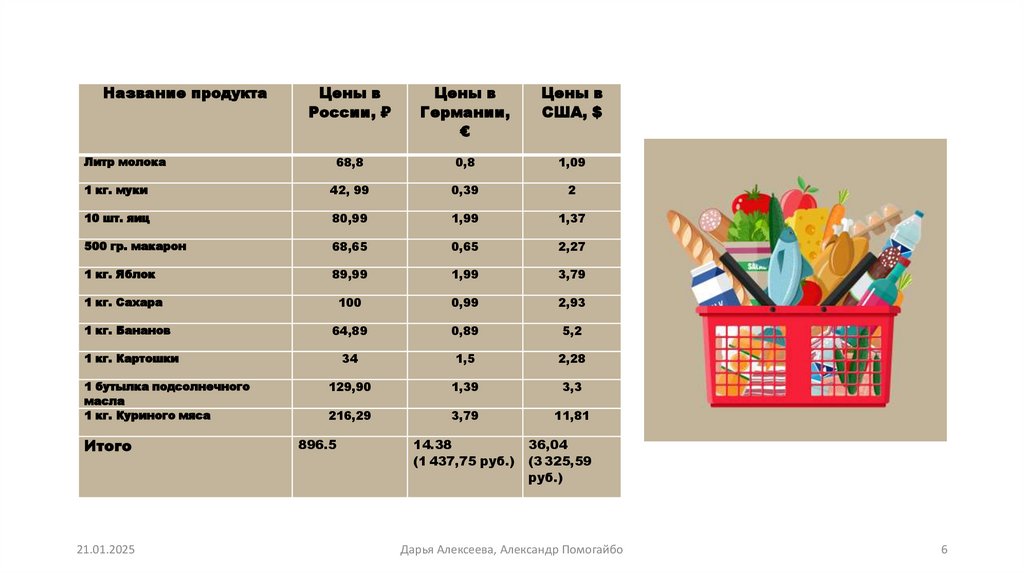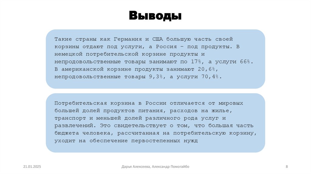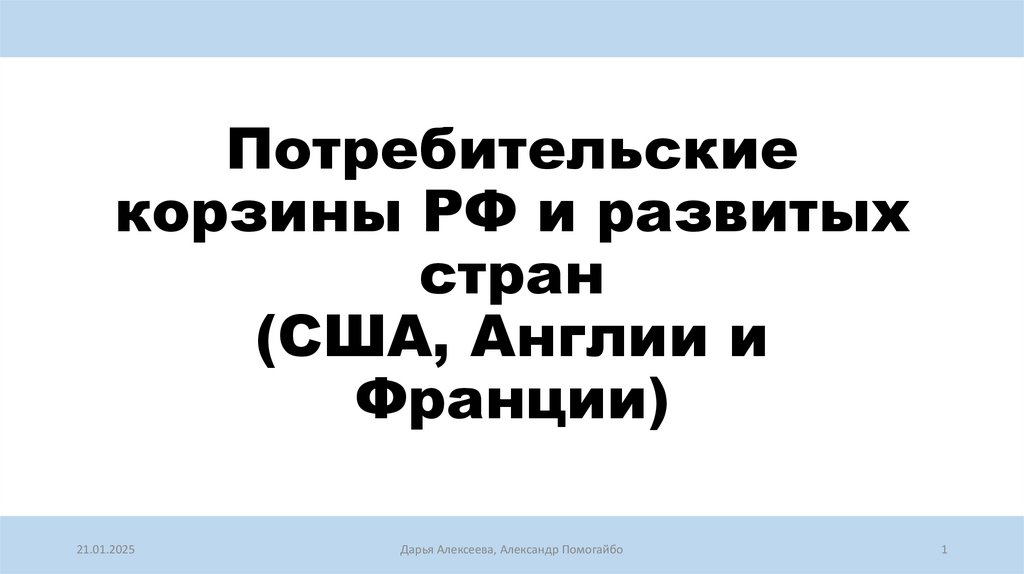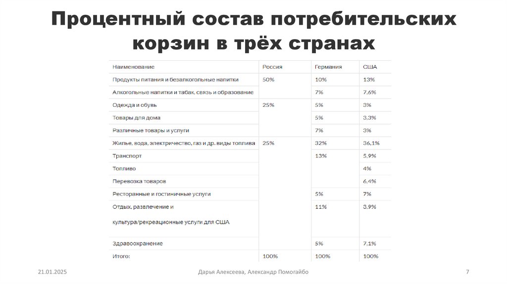 Потребительские корзины РФ и развитых стран (США, Англии и Франции) 21.01.2025