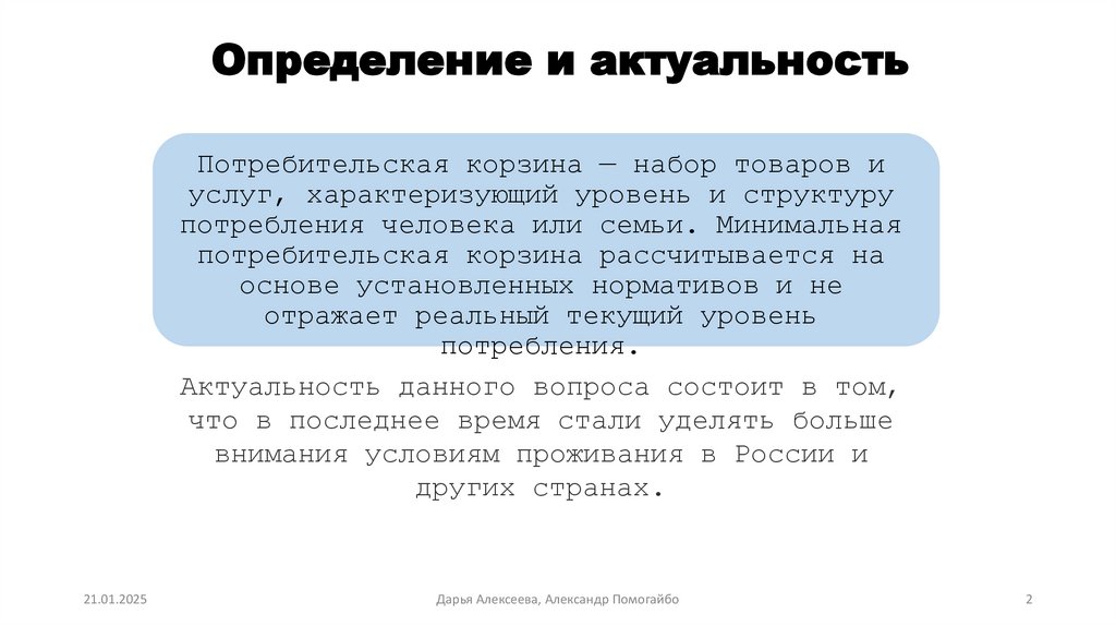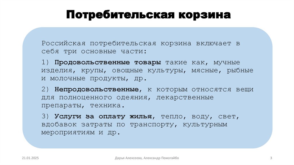Определение и актуальностьПотребительская корзина — набор товаров и
