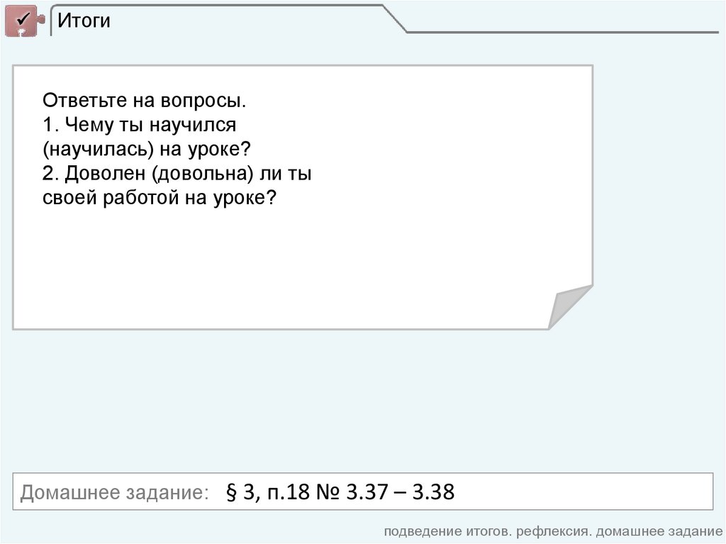 подведение итогов. рефлексия. домашнее задание