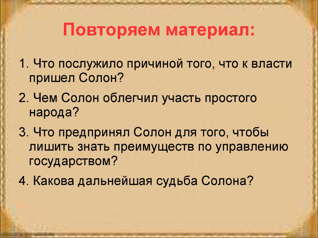 Повторяем материал:1. Что послужило причиной того, что к власти
