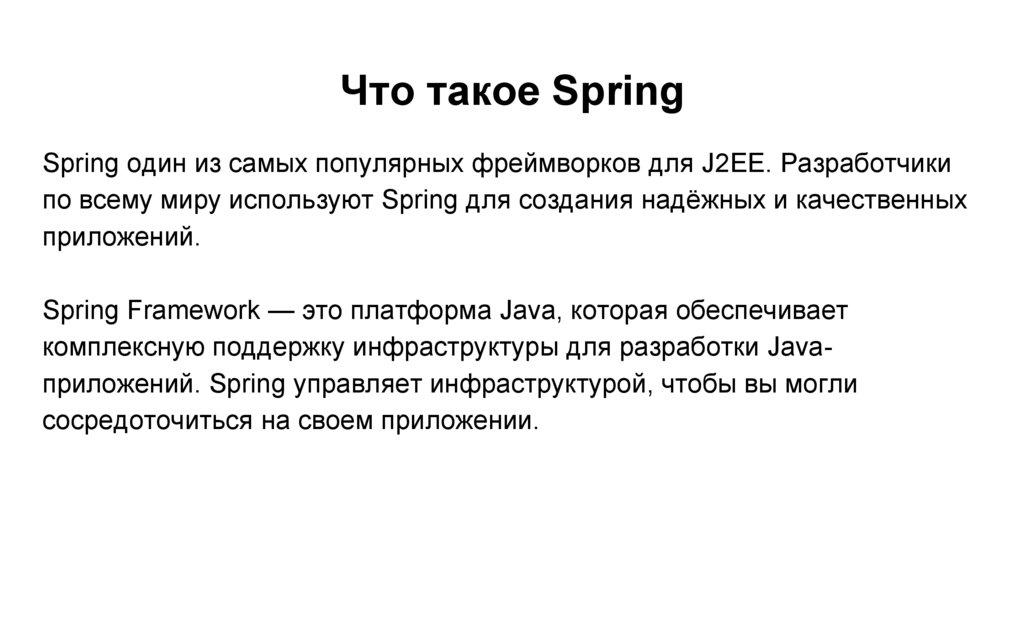 Что такое SpringSpring один из самых популярных фреймворков для J2EE. Разработчики