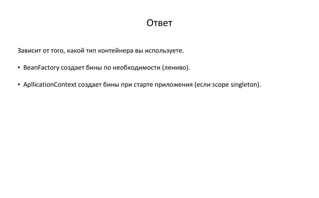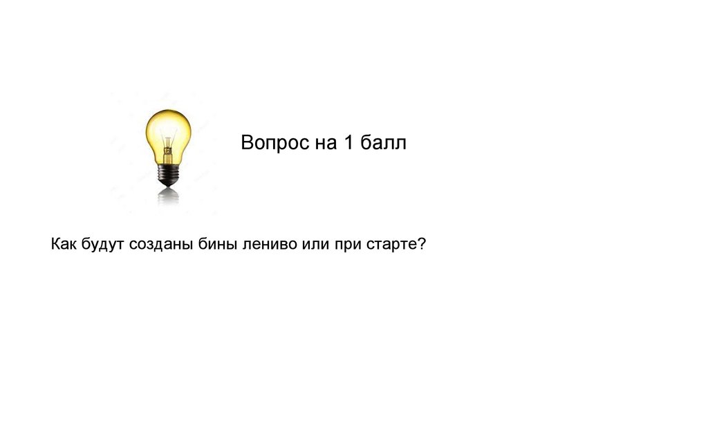 Вопрос на 1 баллКак будут созданы бины лениво или при старте?