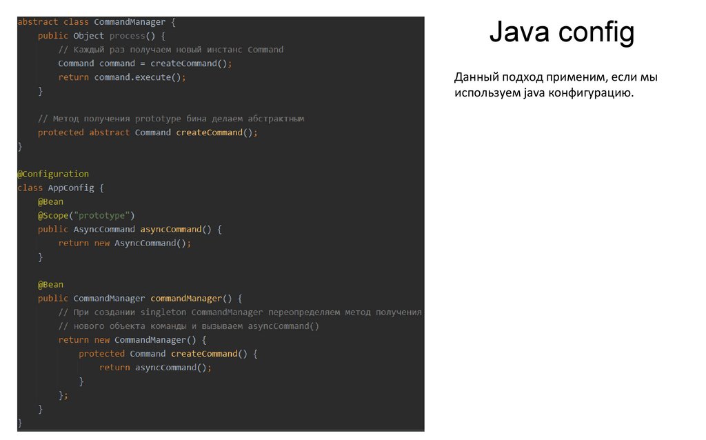 Prototype scope – Каждый раз создается новый инстанс объекта. Т.е. при каждом запросе к контейнеру на