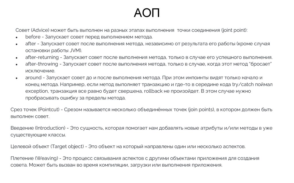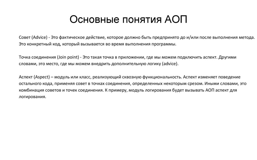 Основные понятия АОПСовет (Advice) - Это фактическое действие, которое должно быть предпринято до и/или после выполнения метода.