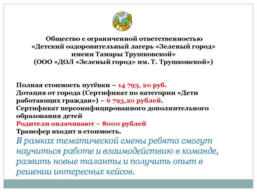 (ООО «ДОЛ «Зеленый город» им. Т. Трушковской»)