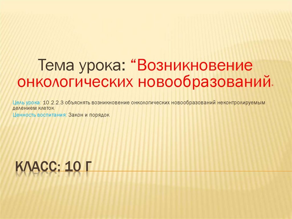 Цель урока: 10.2.2.3 объяснять возникновение онкологических новообразований неконтролируемым