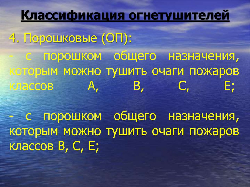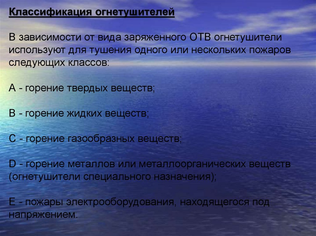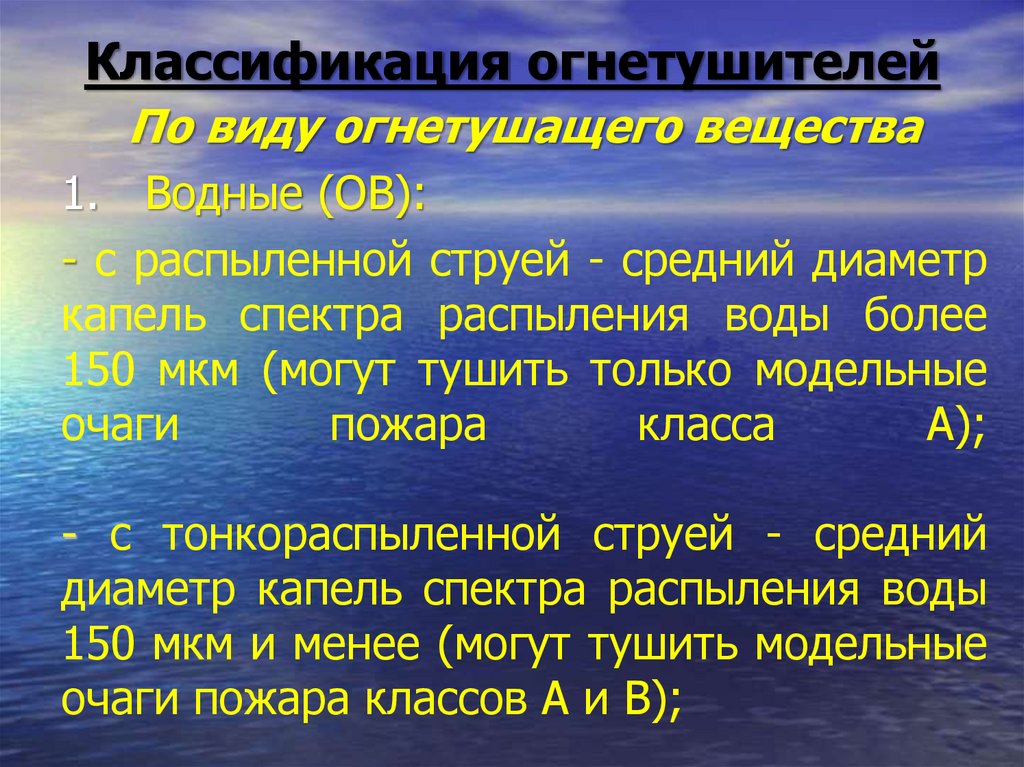 Классификация огнетушителейВ зависимости от вида заряженного ОТВ огнетушители