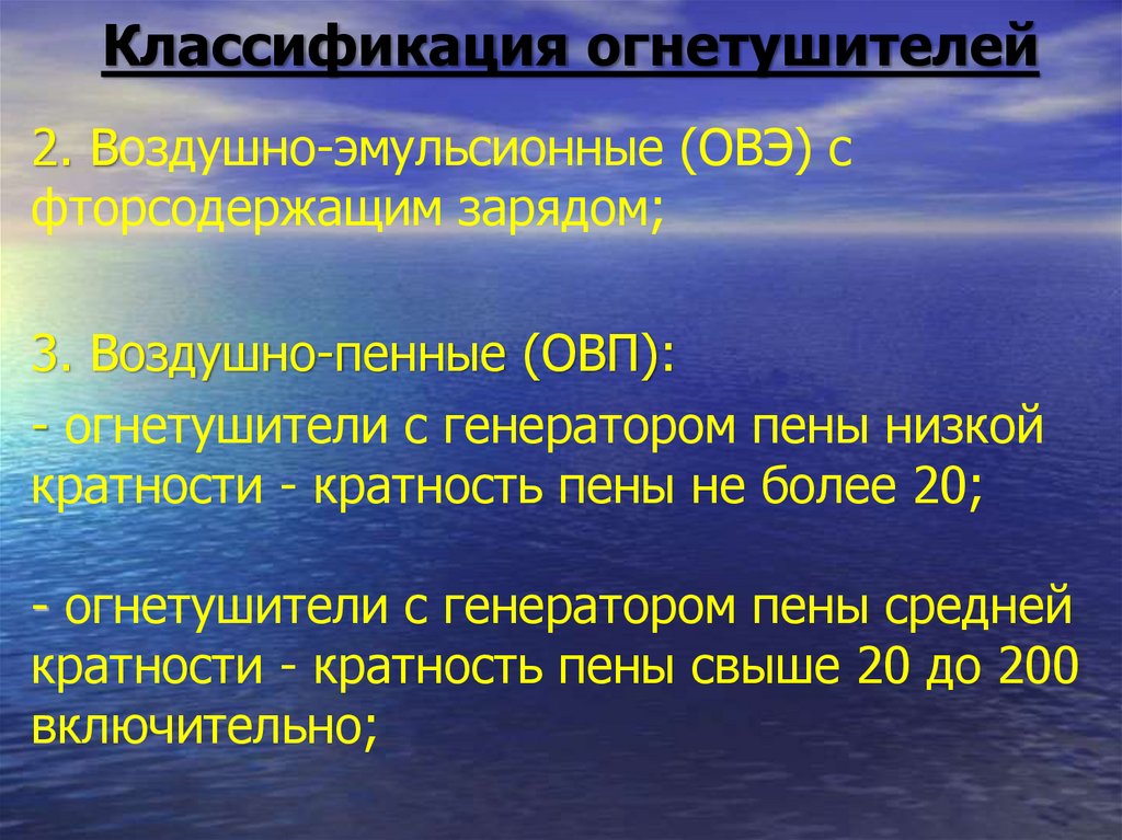 Классификация огнетушителей2. Воздушно-эмульсионные (ОВЭ) с