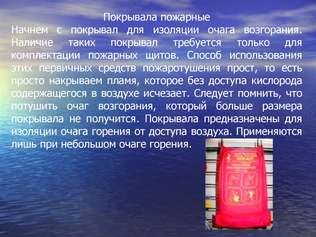 Покрывала пожарныеНачнем с покрывал для изоляции очага возгорания.