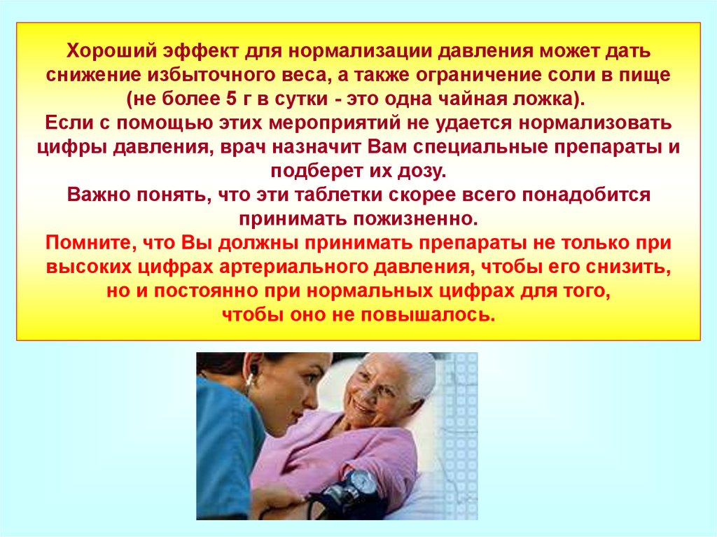 Хороший эффект для нормализации давления может датьснижение избыточного веса, а также ограничение соли в пище