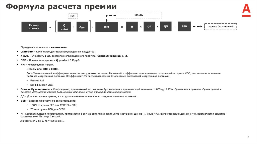 Оценка Руководителя – Коэффициент, применяемый по решению Руководителя и принимающий значение от 80% до 150%. Применяется правило: Сумма премий с