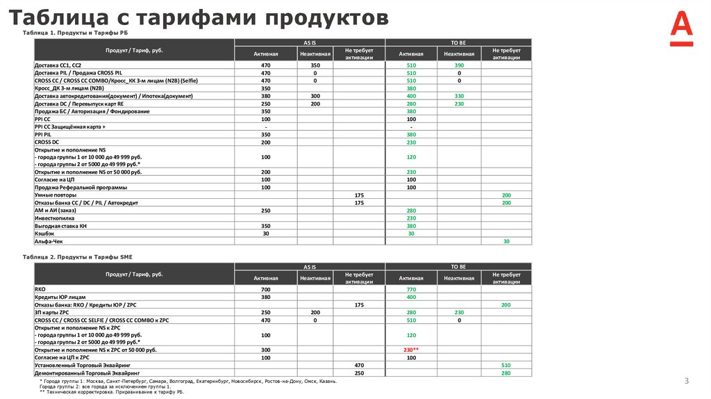 Таблица с тарифами продуктовТаблица 1. Продукты и Тарифы РБ