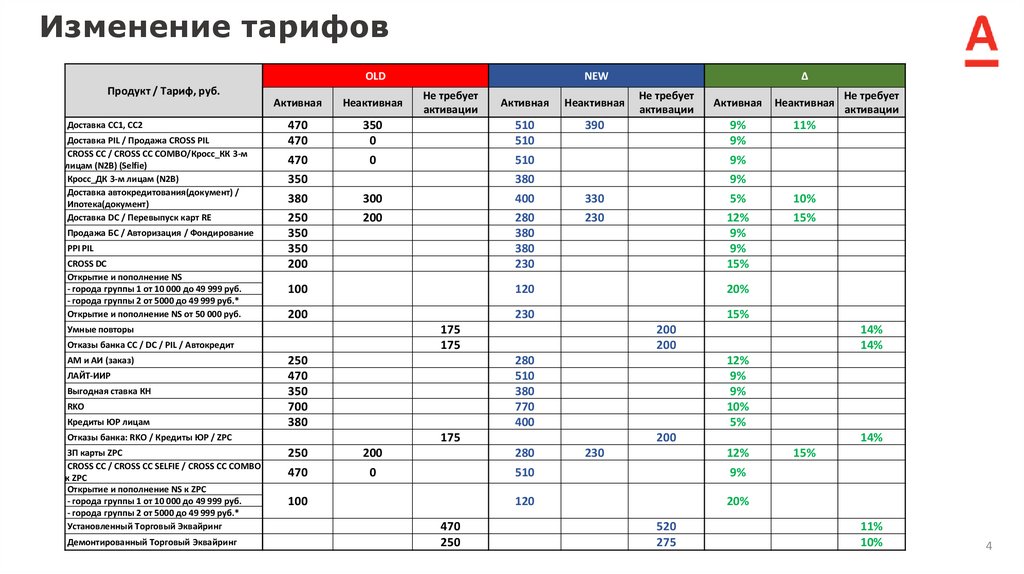 ИЗМЕНЕНИЕ ТАРИФОВ СОТРУДНИКАМ ГРУППЫ