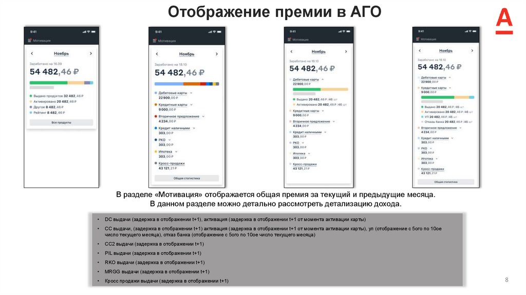 Отображение премии в АГОВ разделе «Мотивация» отображается общая премия за текущий и предыдущие месяца.
