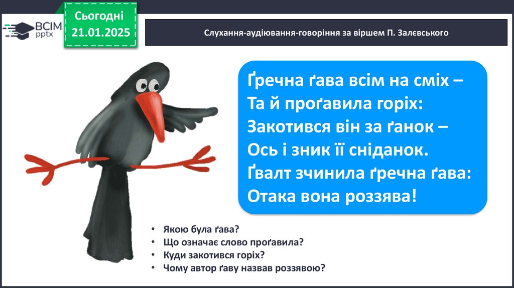 Слухання-аудіювання-говоріння за віршем П. Залєвського