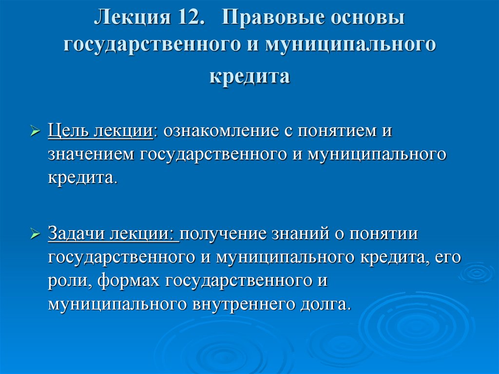 1. Лекция 12. Правовые основы государственного и муниципального кредита