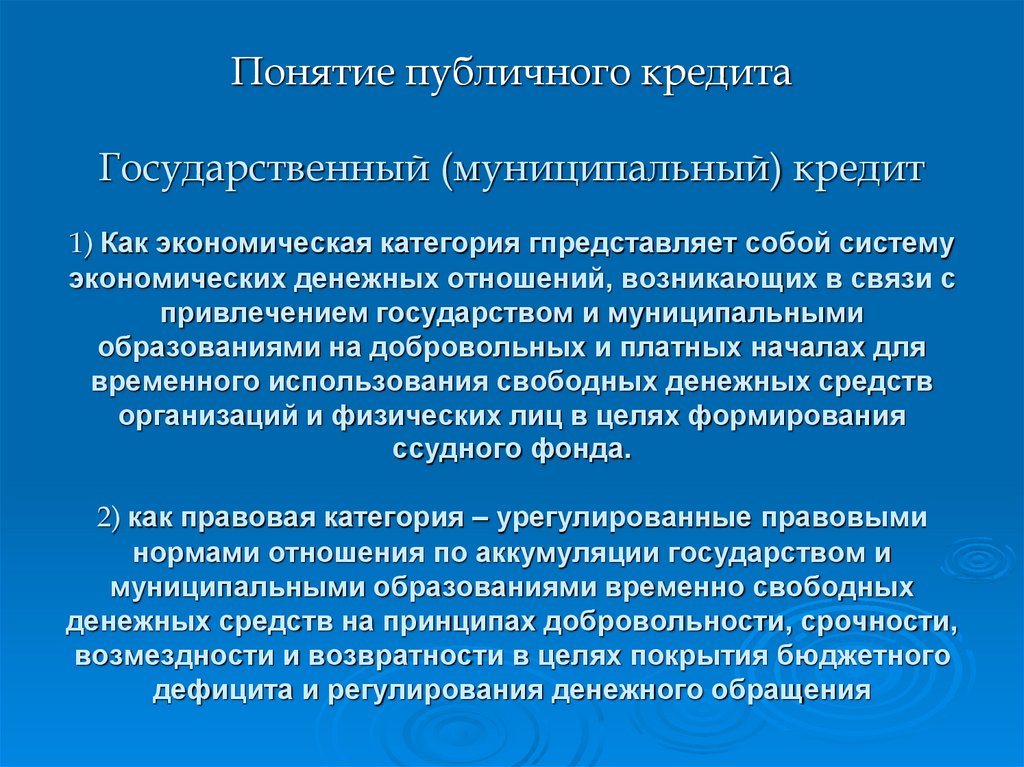 5. Понятие публичного кредита Государственный (муниципальный) кредит 1) Как экономическая категория гпредставляет собой систему