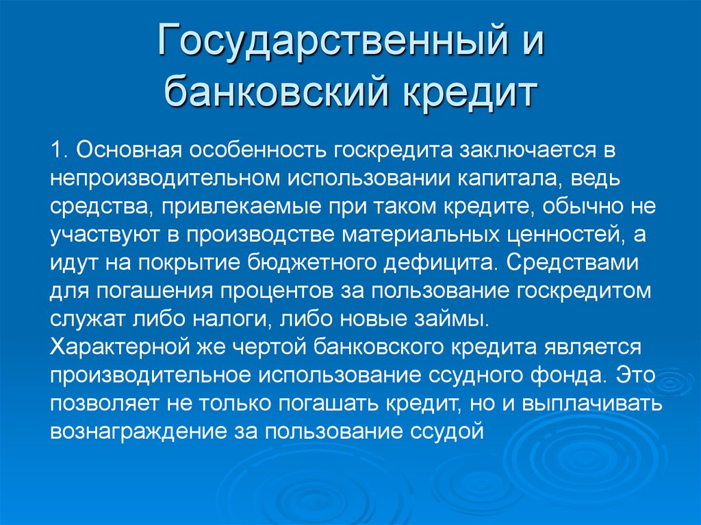 1. Основная особенность госкредита заключается внепроизводительном использовании капитала, ведь