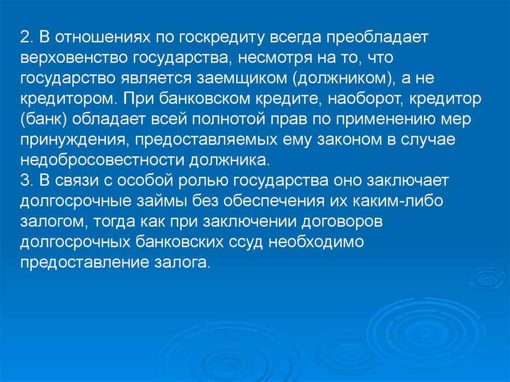 2. В отношениях по госкредиту всегда преобладаетверховенство государства, несмотря на то, что