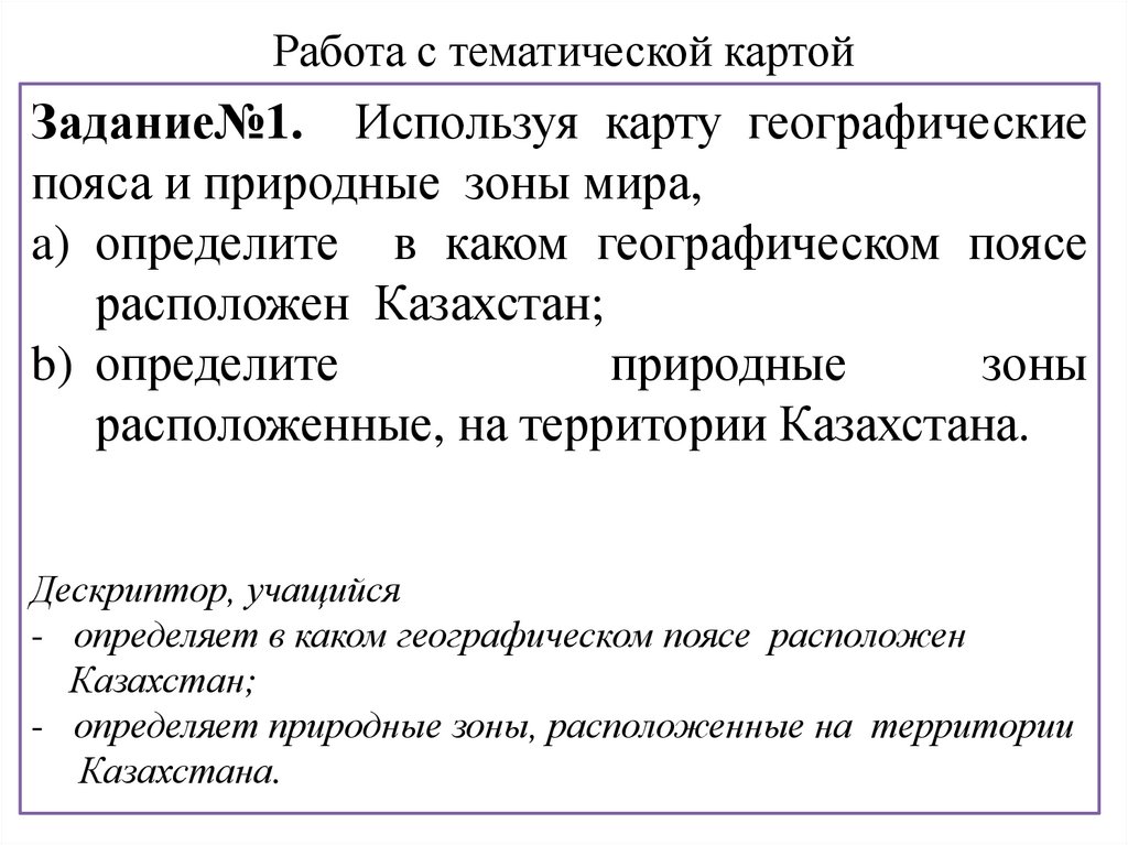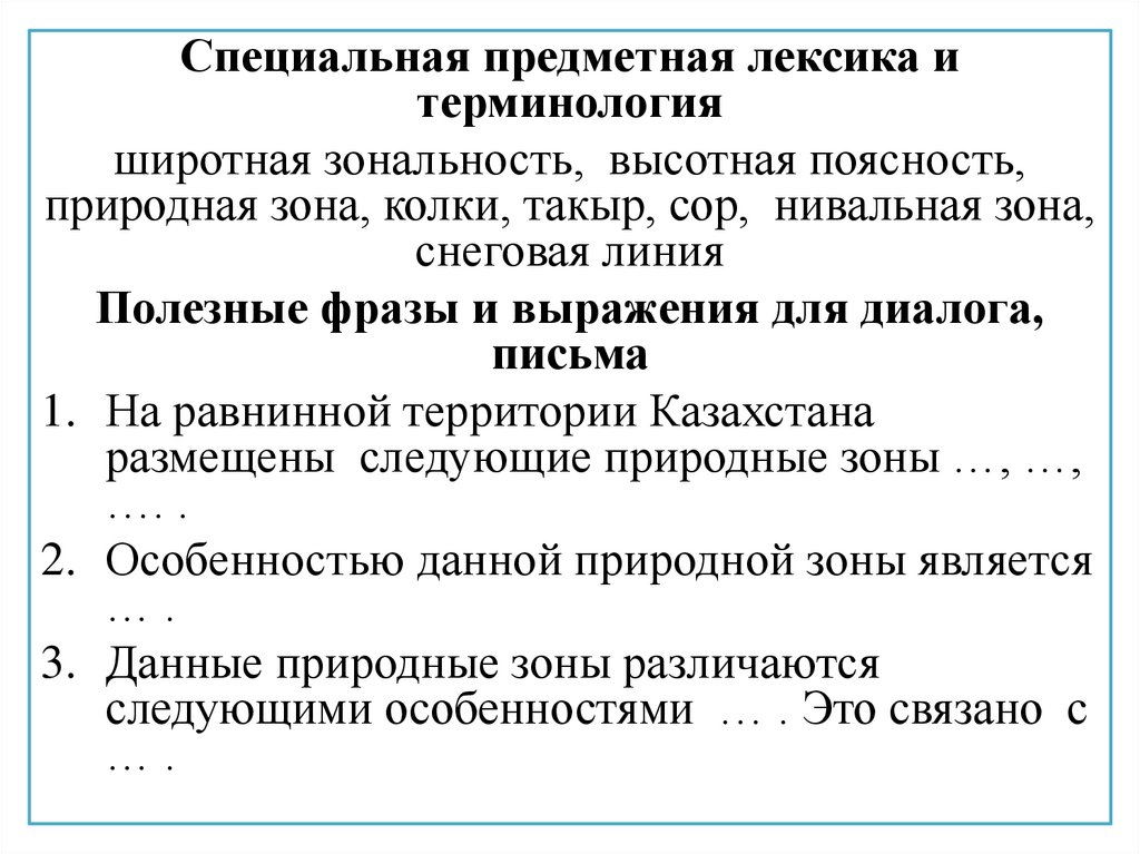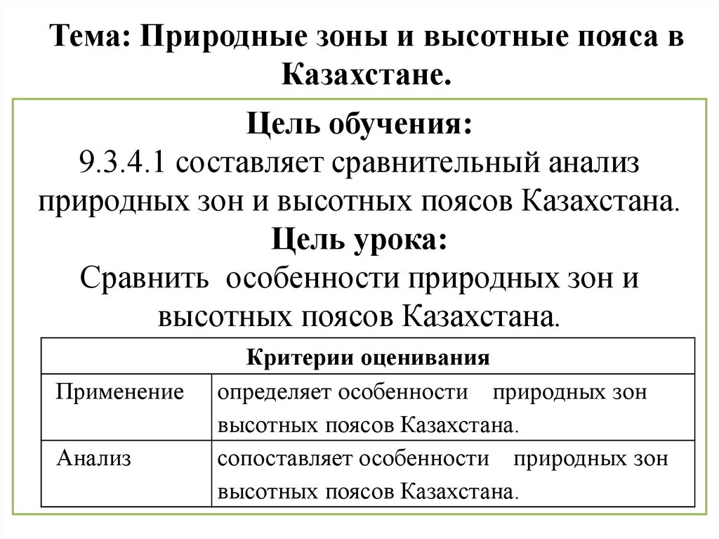 Тема: Природные зоны и высотные пояса вКазахстане.