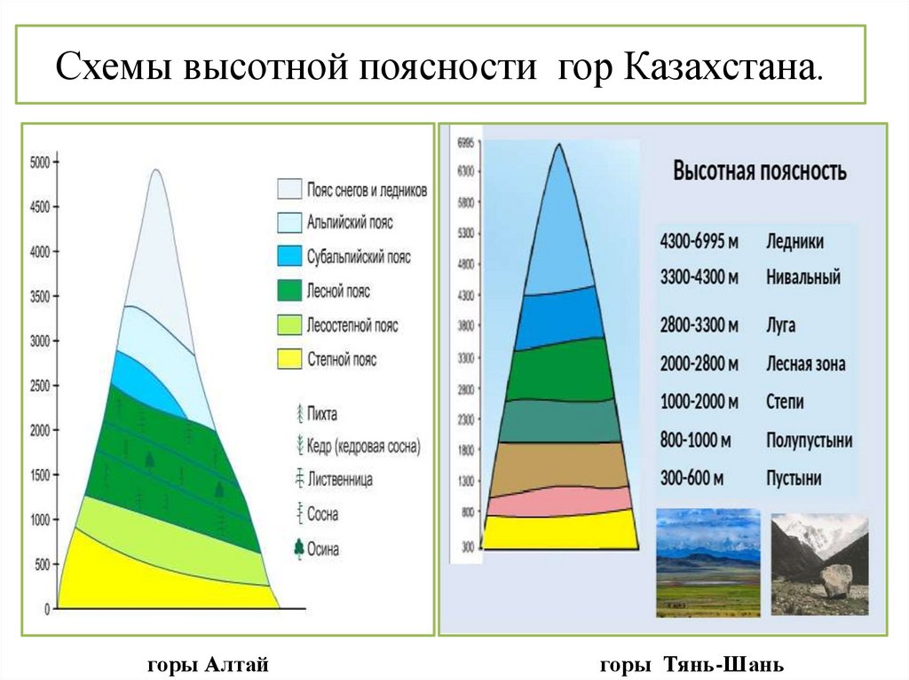Схемы высотной поясности гор Казахстана.горы Алтай