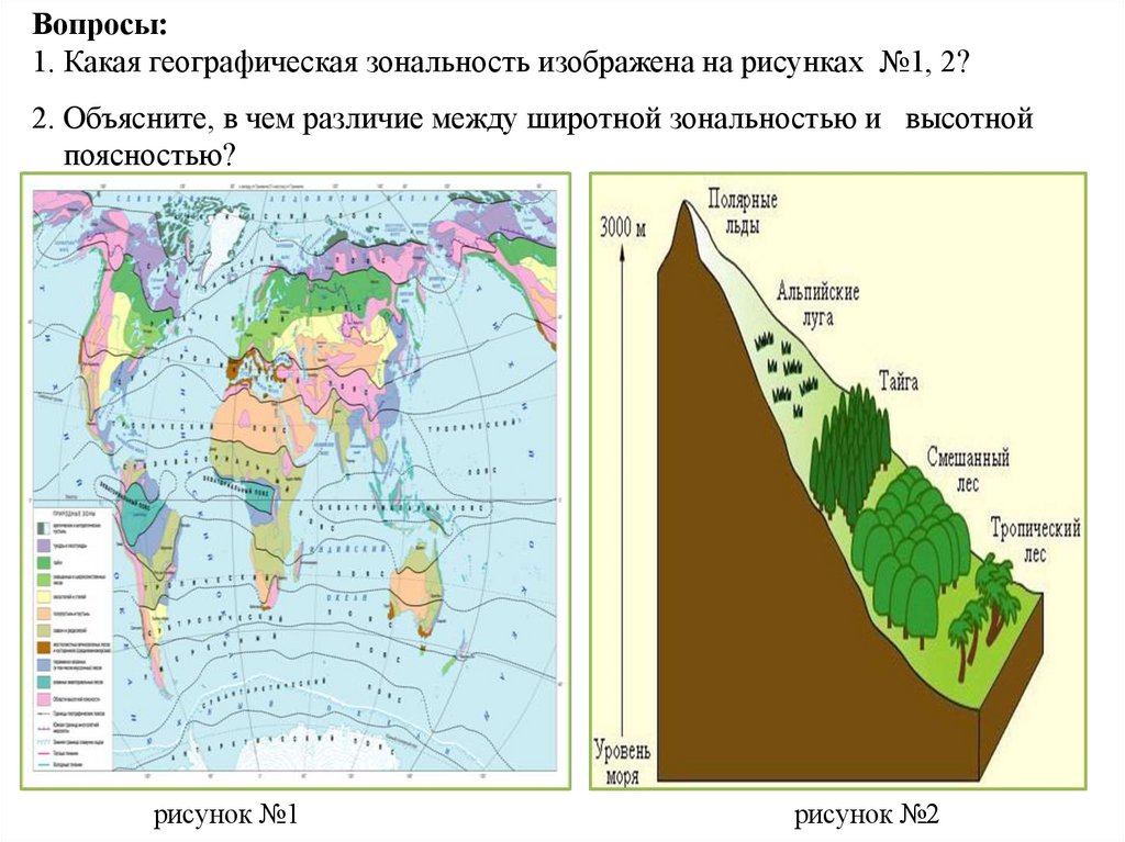 Вопросы:1. Какая географическая зональность изображена на рисунках №1, 2?