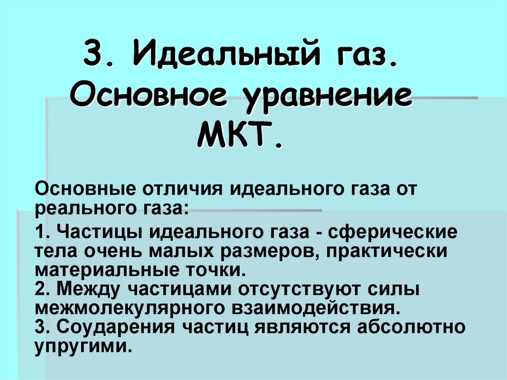 11. 3. Идеальный газ. Основное уравнение МКТ.