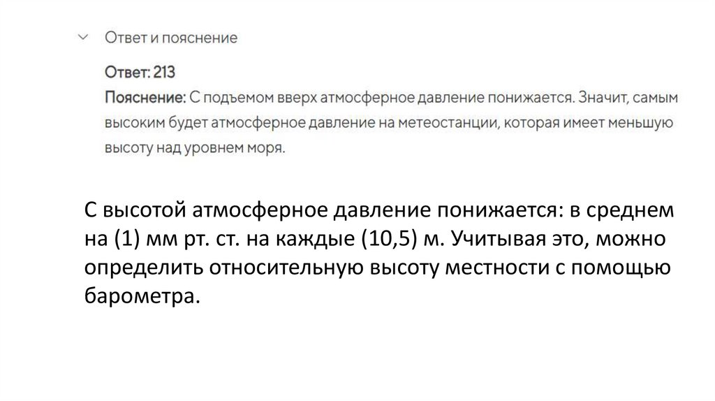 на (1) мм рт. ст. на каждые (10,5) м. Учитывая это, можно