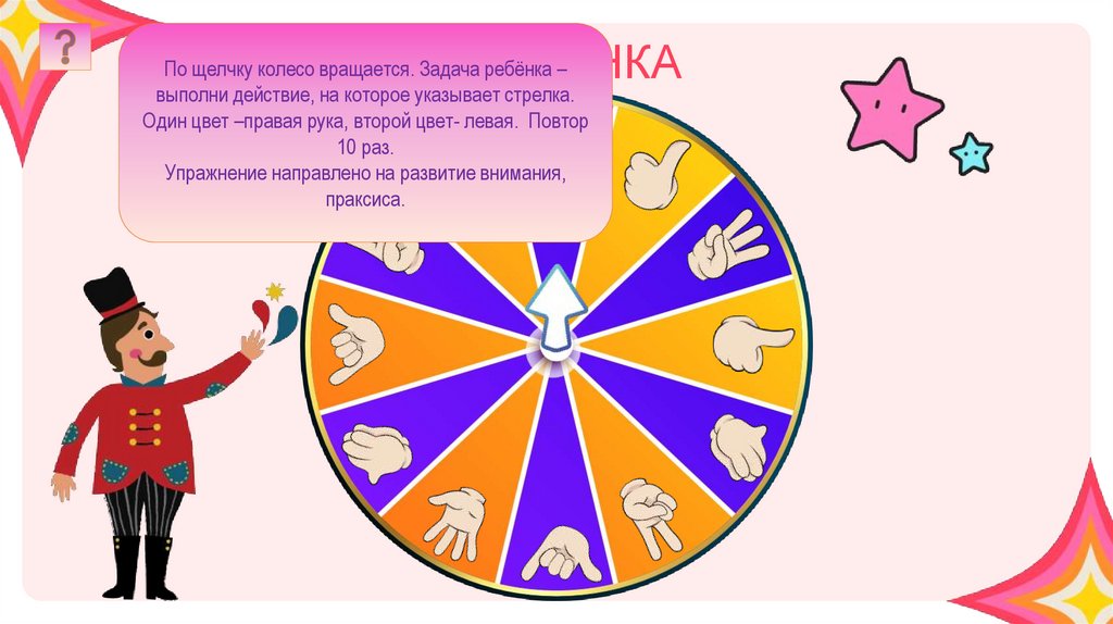 РАЗМИНКАПо щелчку колесо вращается. Задача ребёнка –