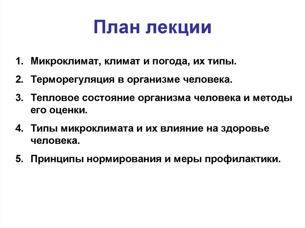 1. Микроклимат, климат и погода, их типы.2. Терморегуляция в организме человека.