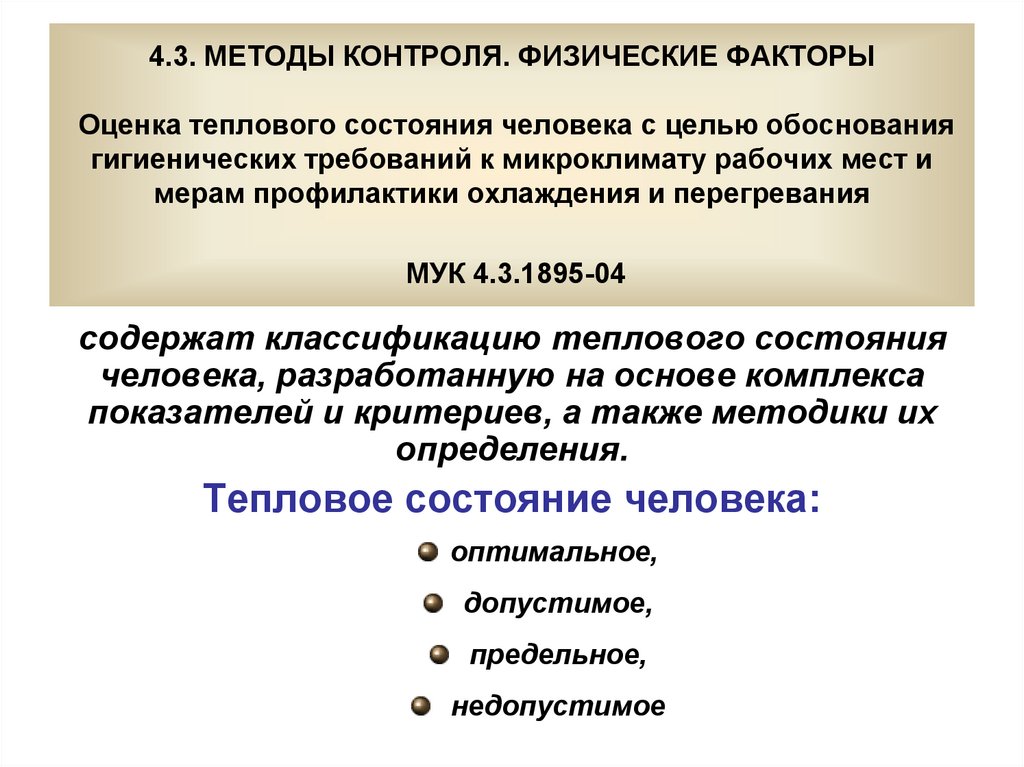 3. Тепловое состояние организма человека и методы
