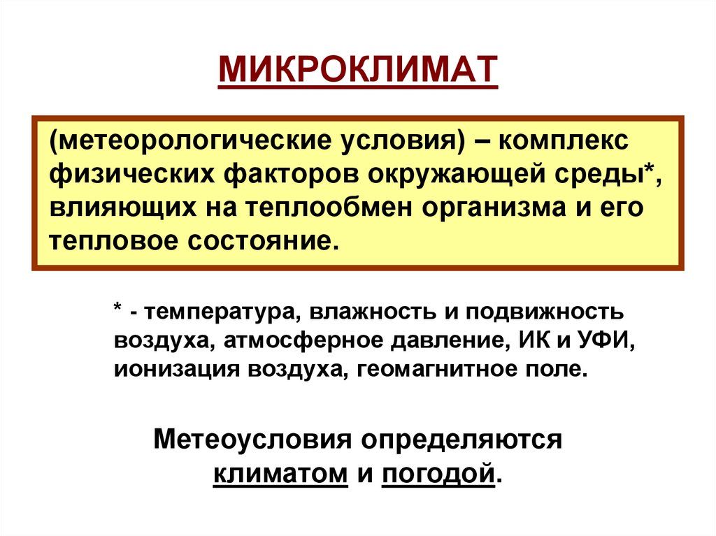 (метеорологические условия) – комплексфизических факторов окружающей среды*,