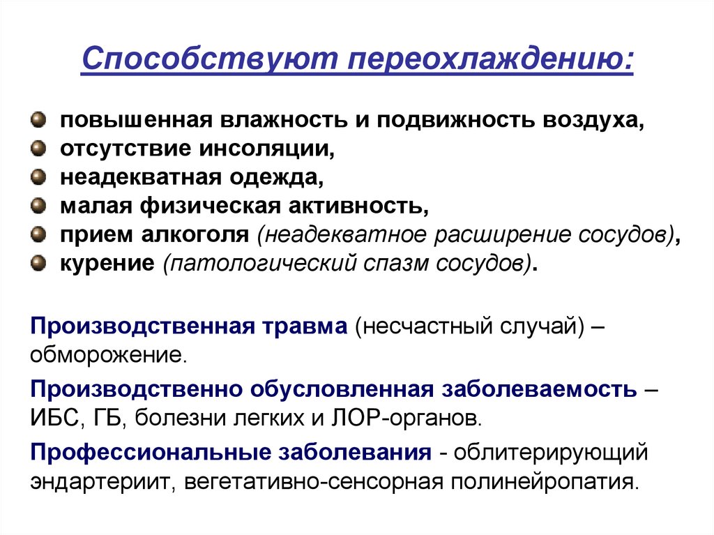 28. Способствуют переохлаждению: