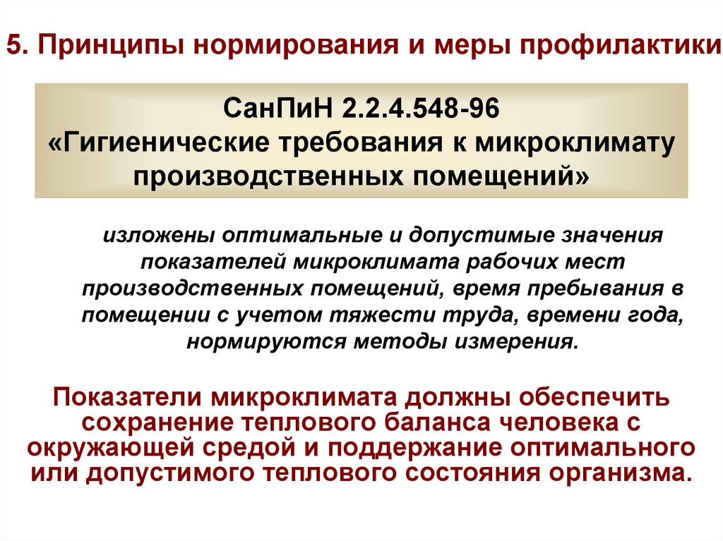 5. Принципы нормирования и меры профилактикиСанПиН 2.2.4.548-96