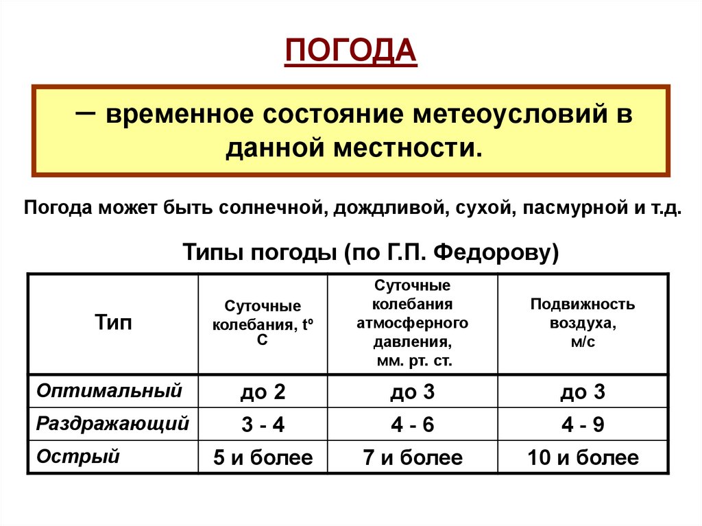 Типы погоды (по Г.П. Федорову)