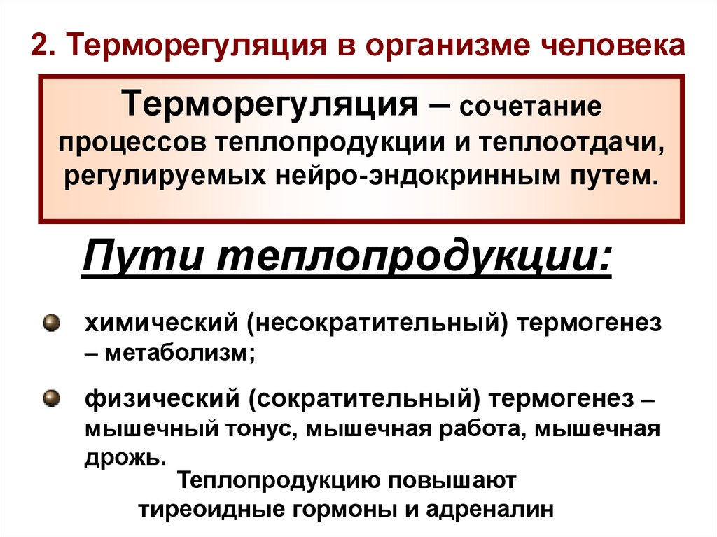 2. Терморегуляция в организме человекаТерморегуляция – сочетание