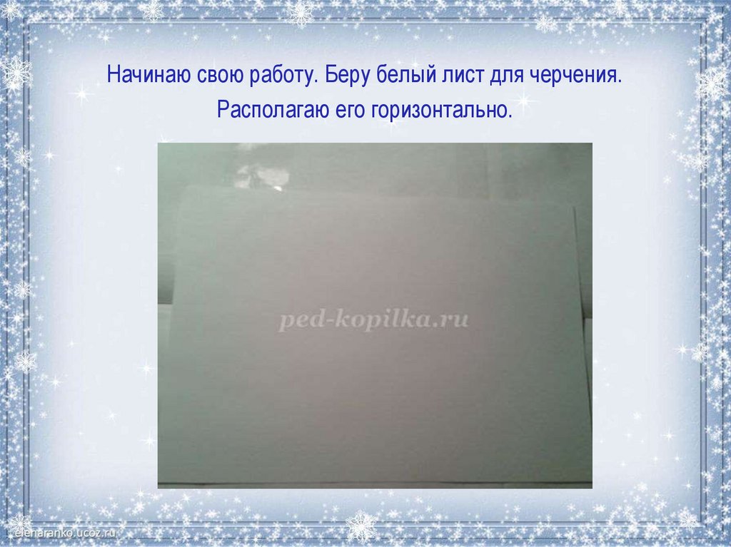 Начинаю свою работу. Беру белый лист для черчения.Располагаю его горизонтально.