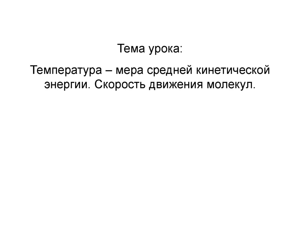 Температура – мера средней кинетической энергии. Скорость движения молекул