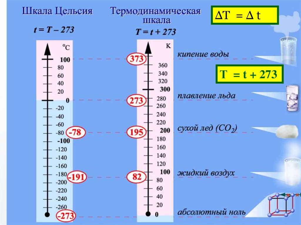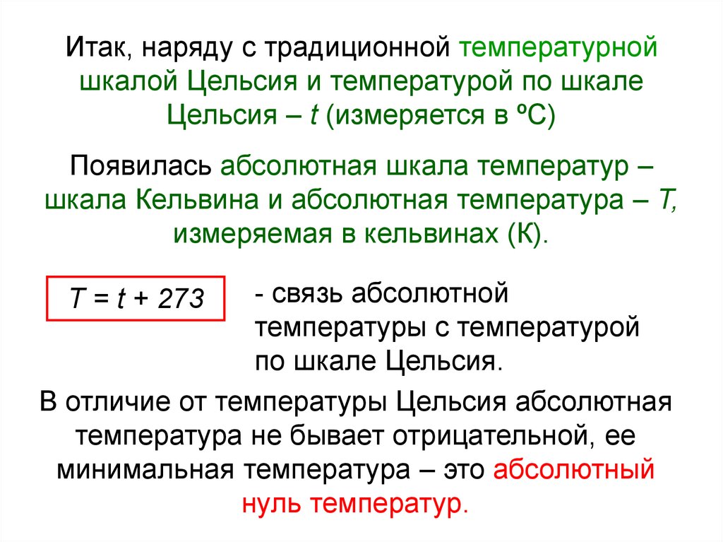 Итак, наряду с традиционной температурнойшкалой Цельсия и температурой по шкале