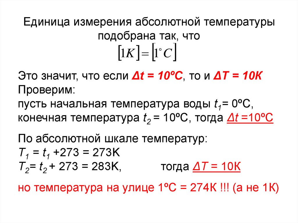 Это значит, что если Δt = 10ºC, то и ΔТ = 10К