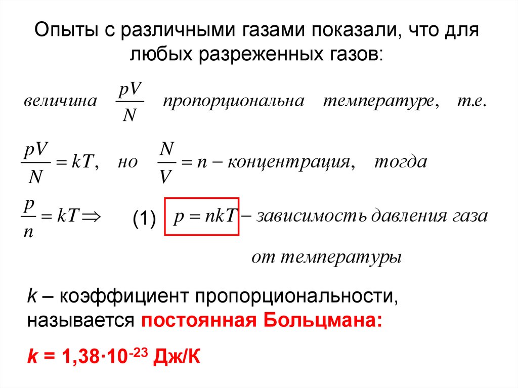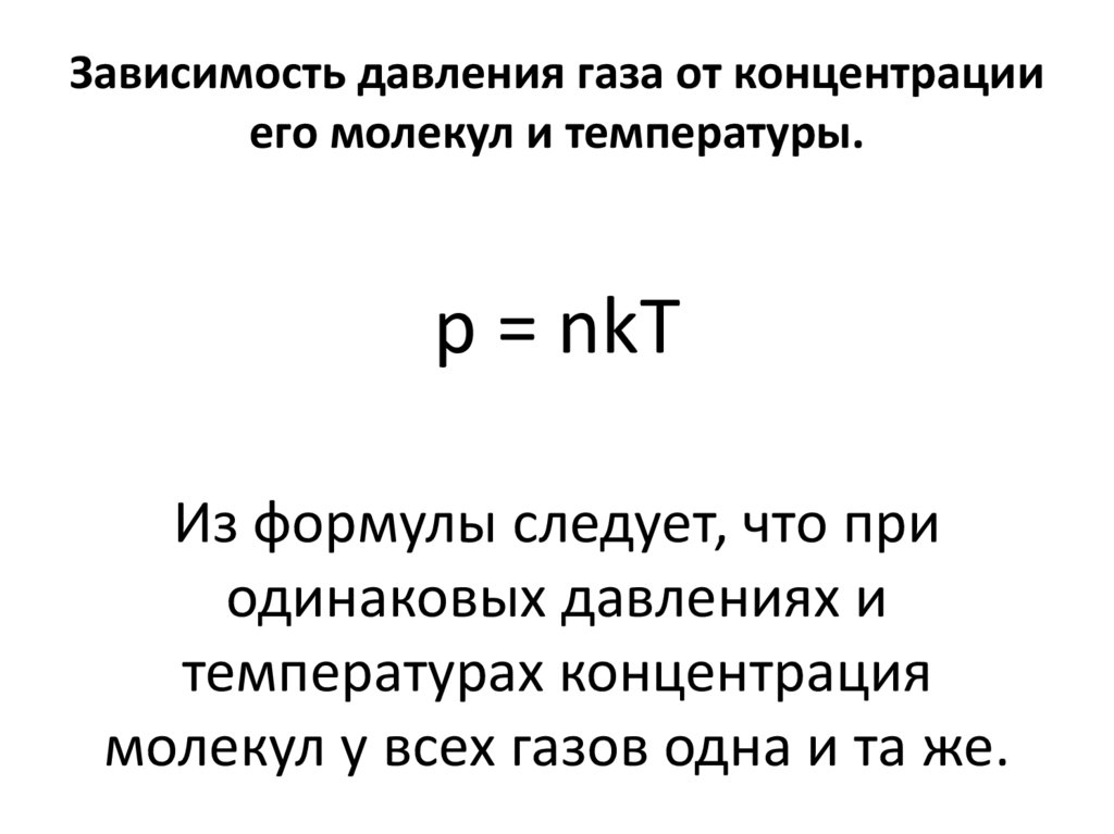 18. Зависимость давления газа от концентрации его молекул и температуры.