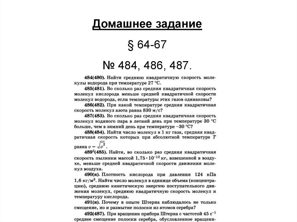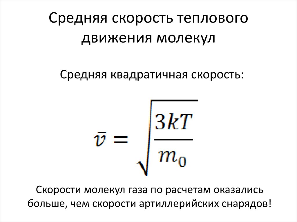 Средняя квадратичная скорость:Скорости молекул газа по расчетам оказались