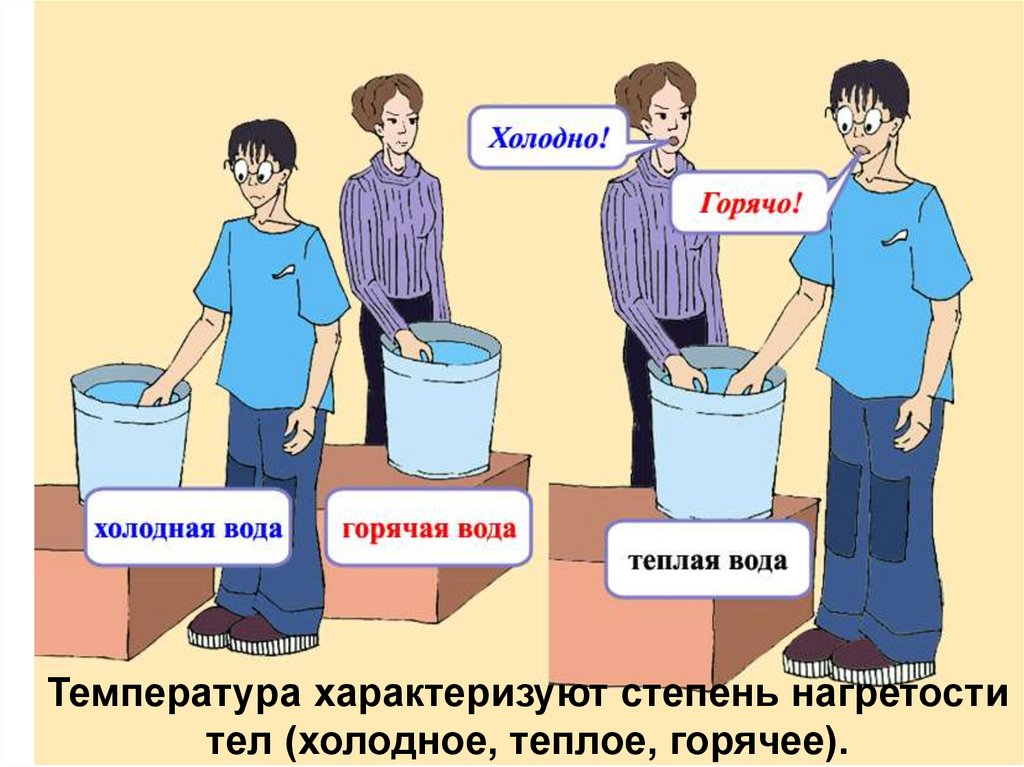 Температура характеризуют степень нагретостител (холодное, теплое, горячее).
