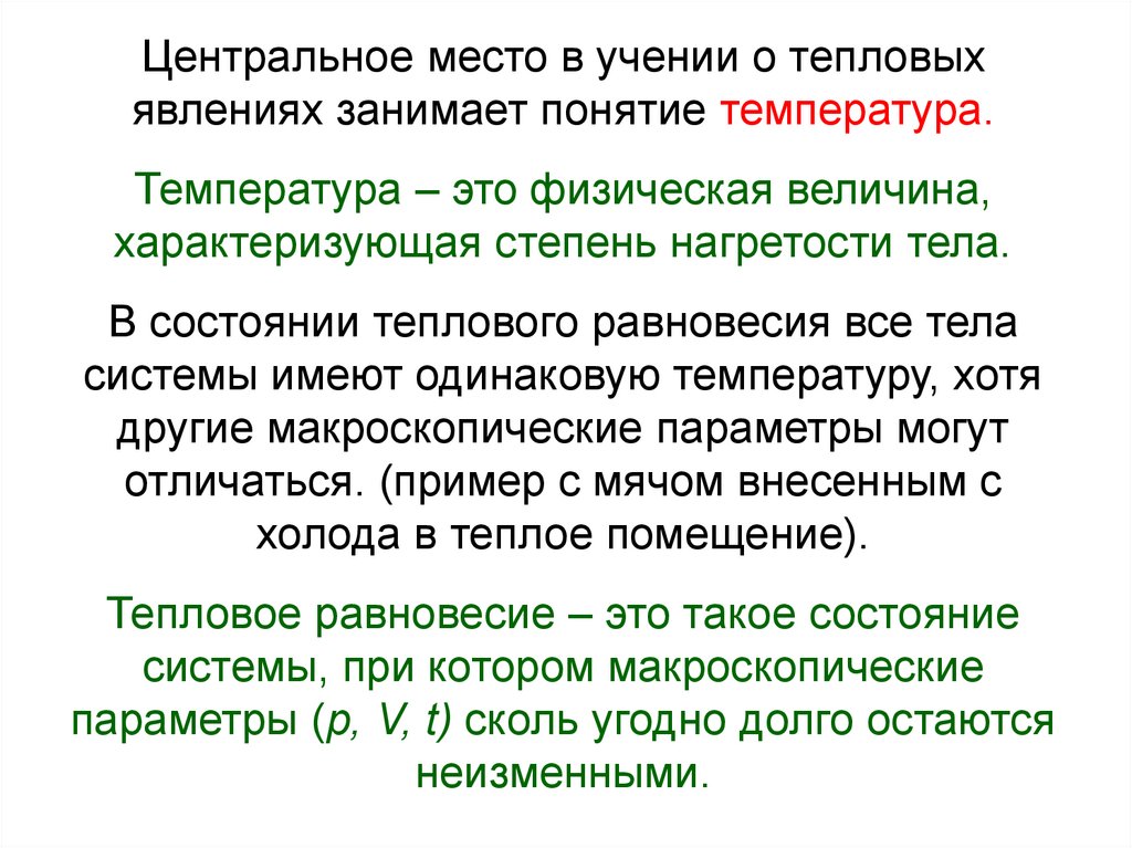 Центральное место в учении о тепловыхявлениях занимает понятие температура.