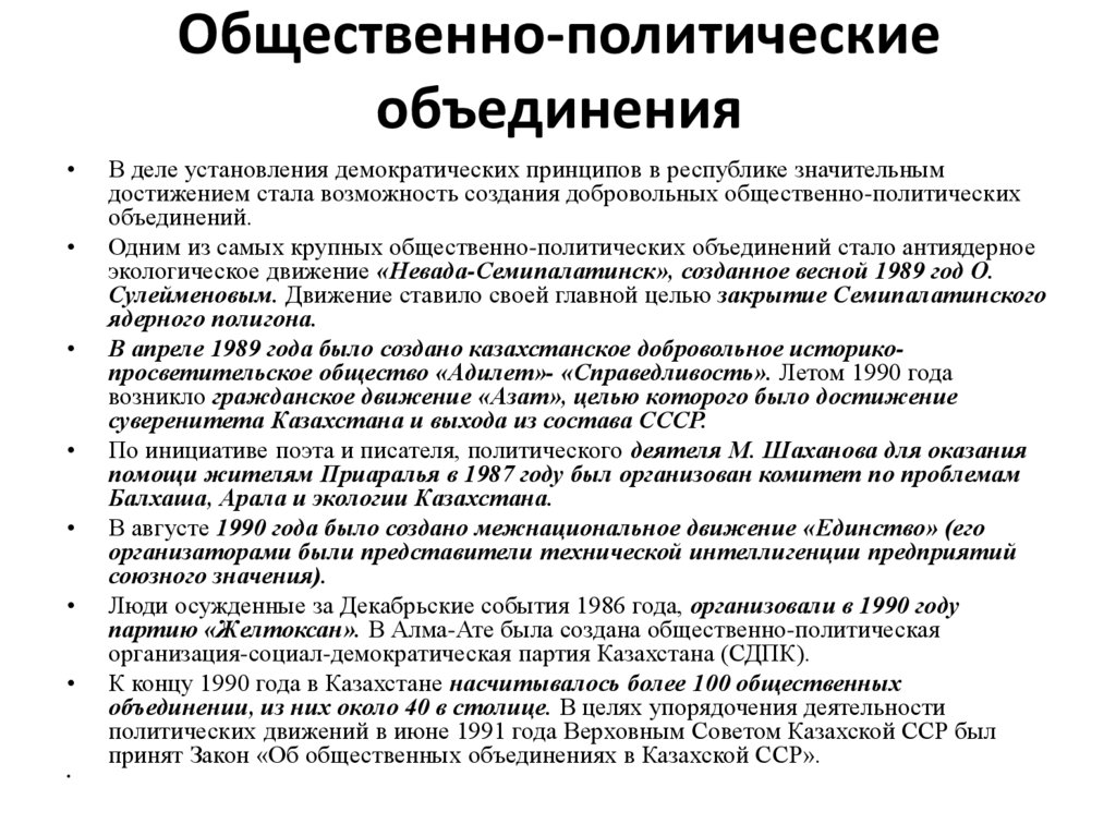 К концу 1990 года в Казахстане насчитывалось более 100 общественных