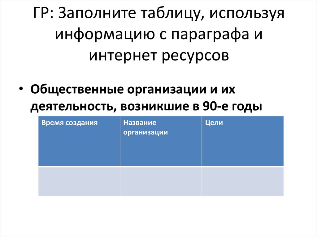 ГР: Заполните таблицу, используяинформацию с параграфа и