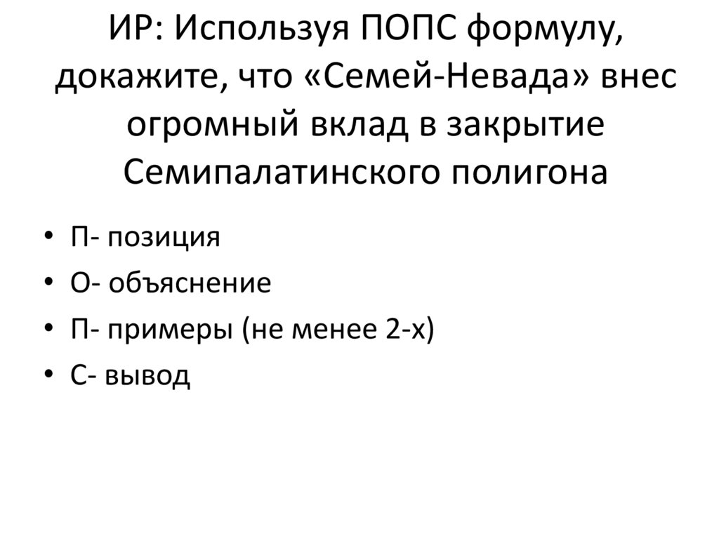 ИР: Используя ПОПС формулу,докажите, что «Семей-Невада» внес