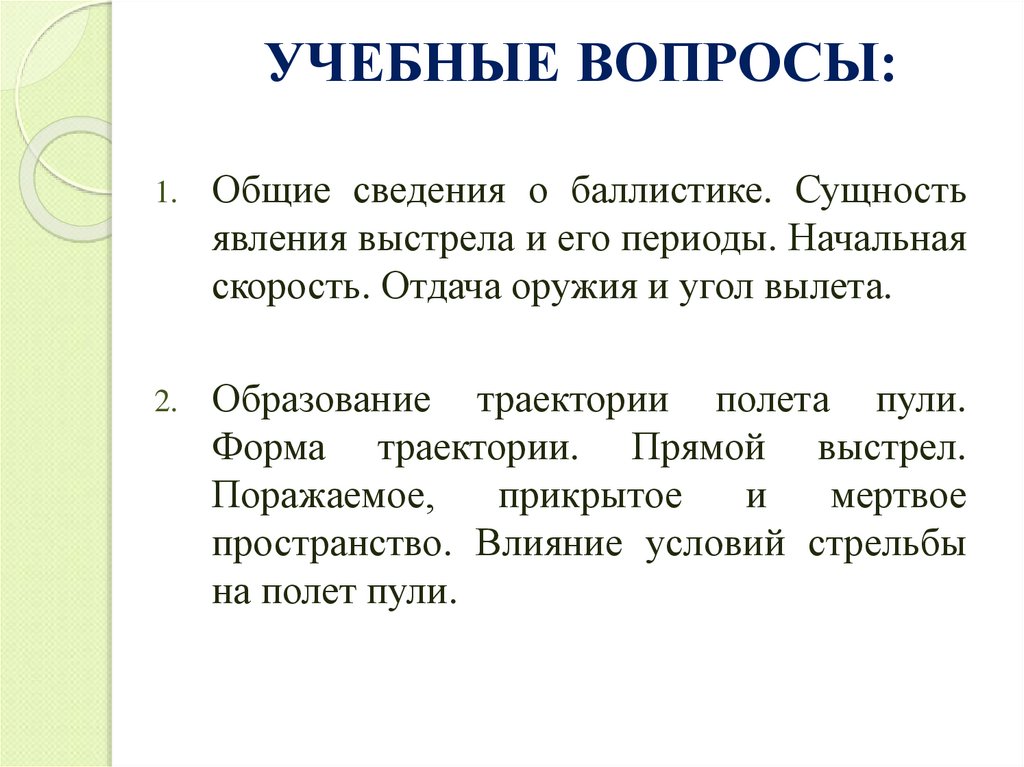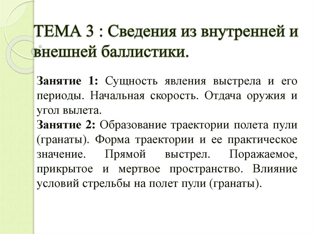 1. ТЕМА 3 : Сведения из внутренней и внешней баллистики.
